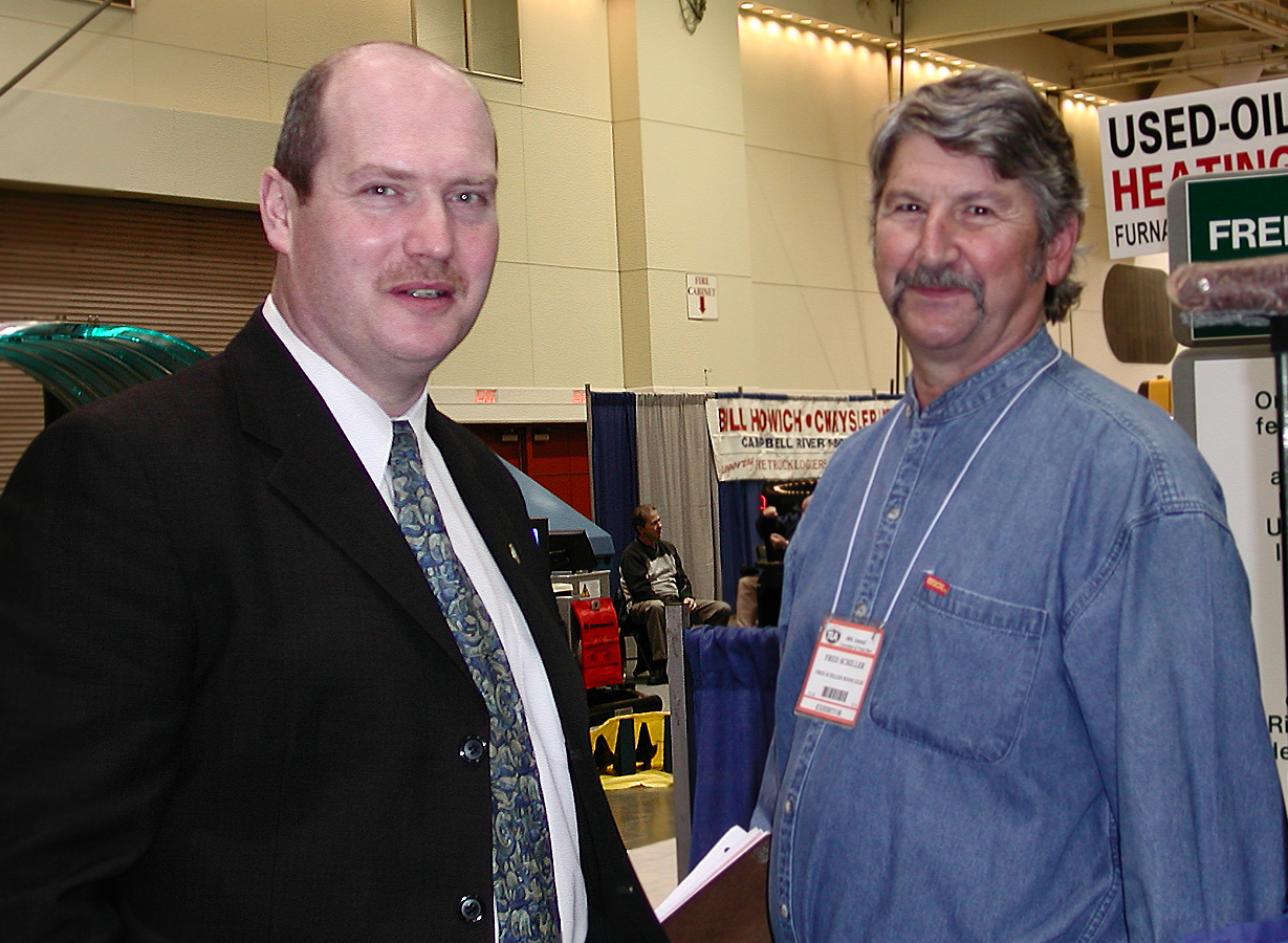 Fred, and Forest Minister, Mike DeJong, discussing log bundling strand clean-up, and the growing use of recycled wire in the forest industry at the recent Truck Loggers Convention in Vancouver.